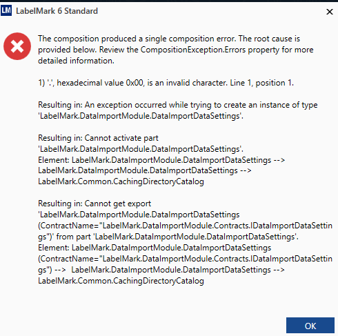 Labelmark 6 Receives The Composition Produced A Single Composition Error When Trying To Create A New File Brady Support