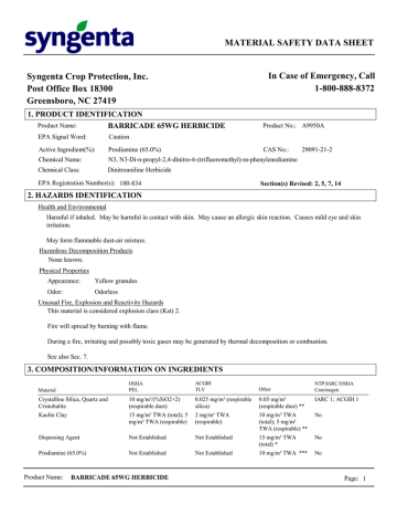 Material Safety Data Sheet In Case Of Emergency Call Manualzz