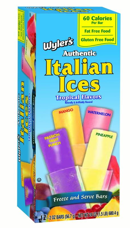 With real fruit juice from concentrate. For a Serving Size of g How many calories are in Italian Ices. Wylers Authentic Italian Ice freezer bars are a refreshing fat free snack or dessert and come in four original flavors.
