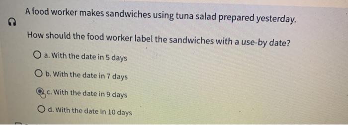 A Food Worker Makes Sandwiches Using Tuna Salad Prepared Yesterday How Should The Food Worker Label Brainly Com