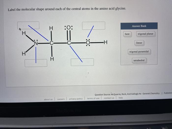 Label The Molecular Shape Around Each Of The Central Atoms In The Amino Acid Glycine Homeworklib