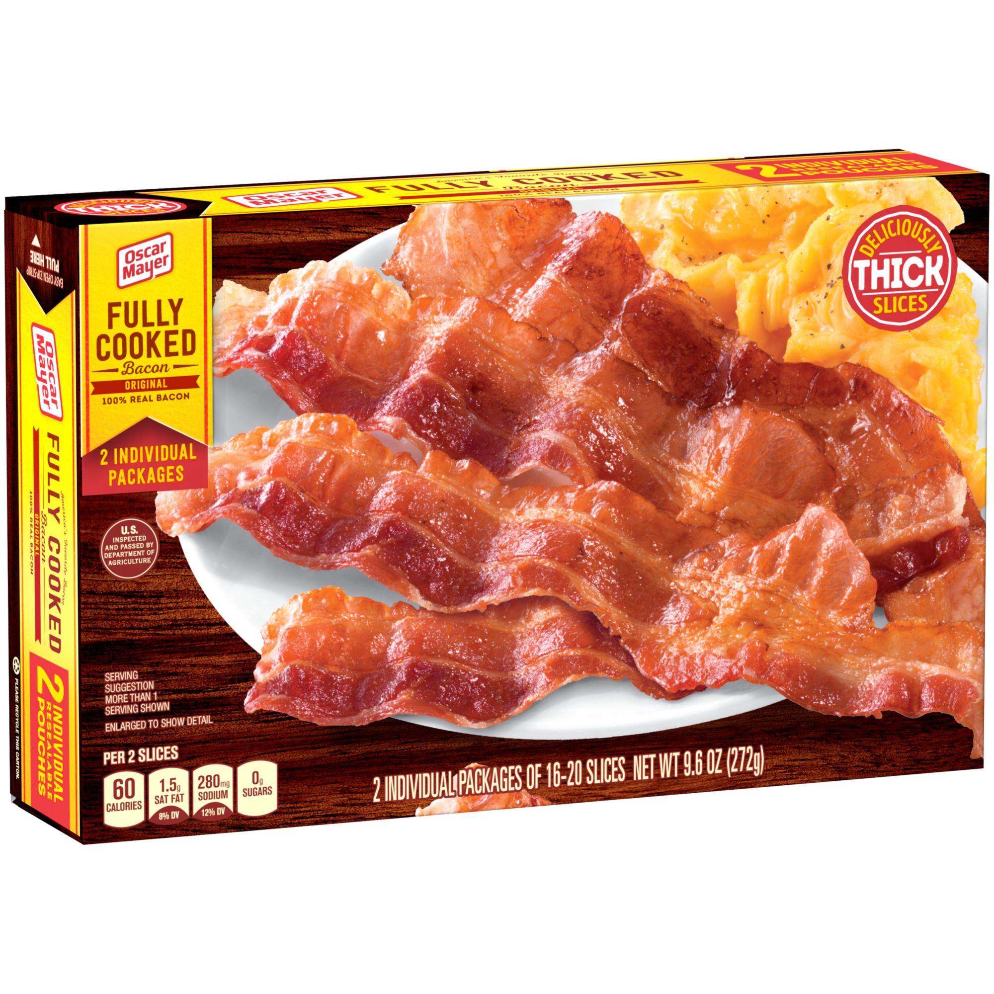 Oscar Mayer Thick Cut Fully Cooked Bacon 2 52 Oz Box Com. Oscar Mayer Thick Cut Fully Cooked Bacon 252 oz Box.