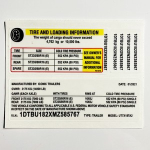 Trailer Id Vin Label Tire Pressure Decal Ebay